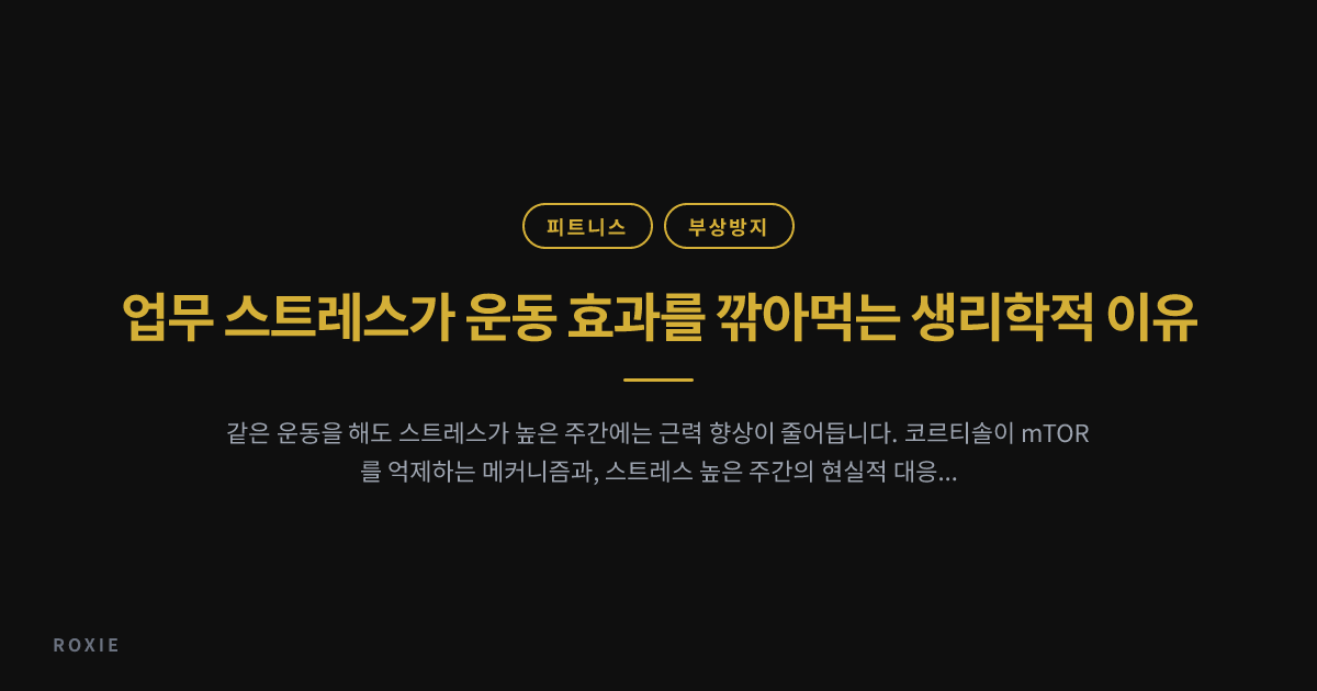 같은 운동을 해도 스트레스가 높은 주간에는 근력 향상이 줄어듭니다. 코르티솔이 mTOR를 억제하는 메커니즘과, 스트레스 높은 주간의 현실적 대응 전략을 정리했습니다.