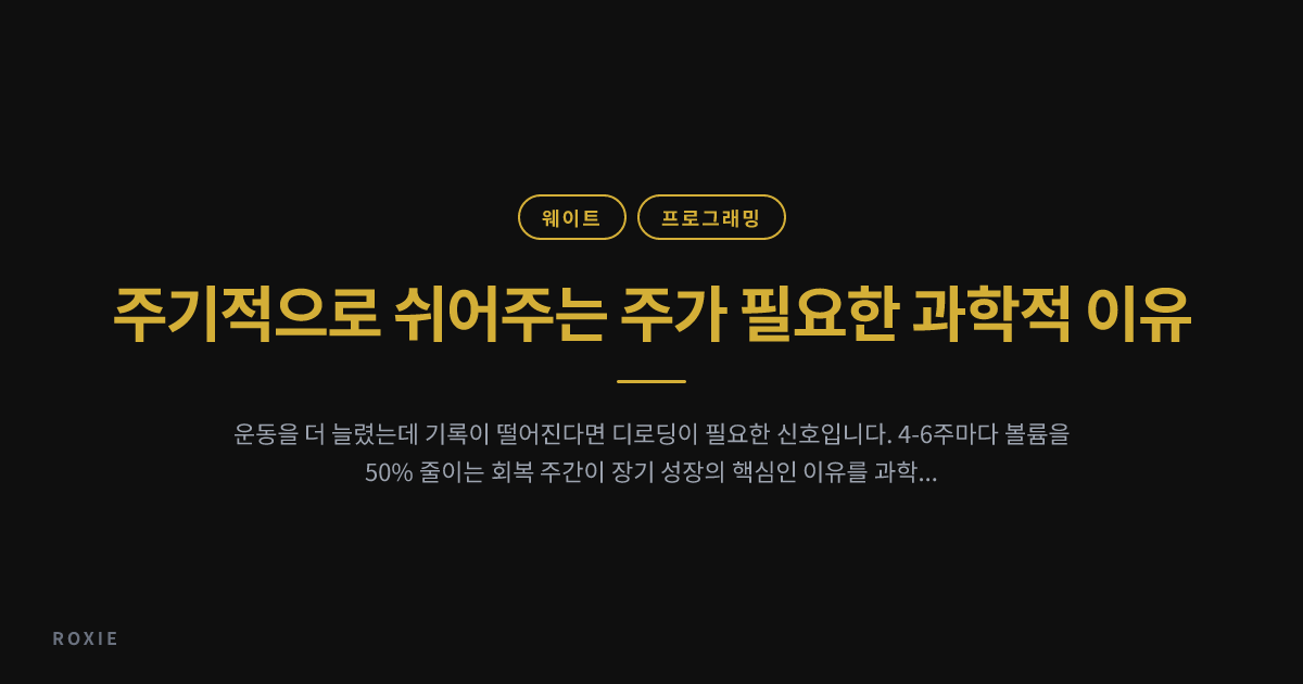 운동을 더 늘렸는데 기록이 떨어진다면 디로딩이 필요한 신호입니다. 4-6주마다 볼륨을 50% 줄이는 회복 주간이 장기 성장의 핵심인 이유를 과학적으로 정리했습니다.