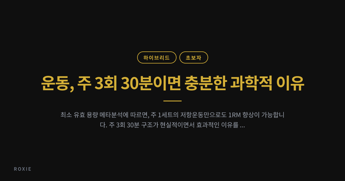 최소 유효 용량 메타분석에 따르면, 주 1세트의 저항운동만으로도 1RM 향상이 가능합니다. 주 3회 30분 구조가 현실적이면서 효과적인 이유를 과학적으로 정리했습니다.