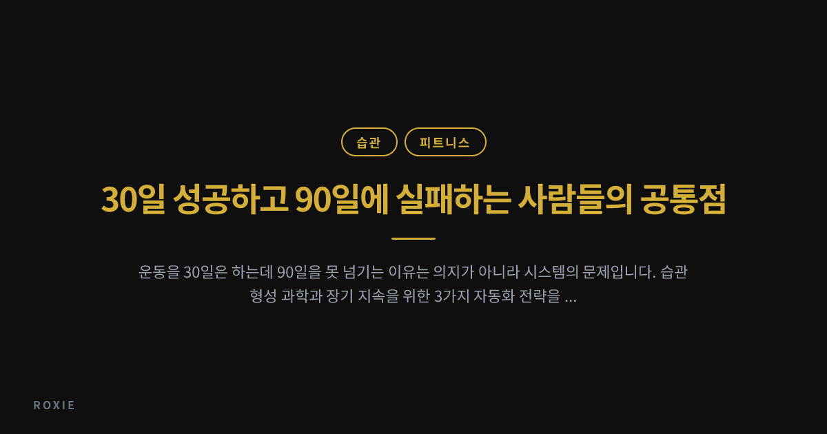 운동을 30일은 하는데 90일을 못 넘기는 이유는 의지가 아니라 시스템의 문제입니다. 습관 형성 과학과 장기 지속을 위한 3가지 자동화 전략을 정리했습니다.